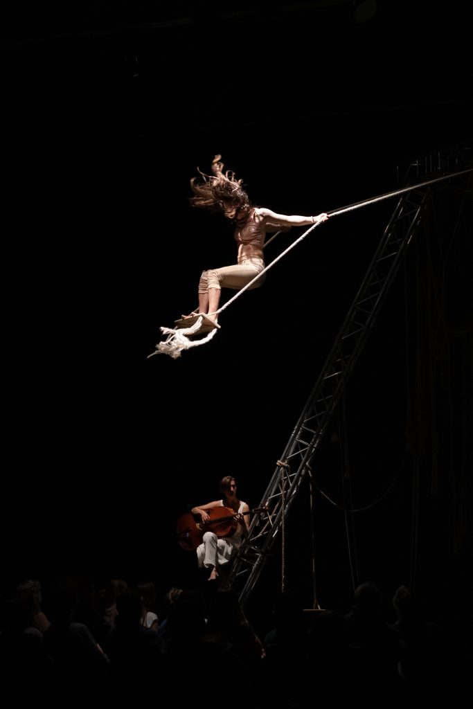 Performance: Carmen Raffaela Küster (aerial acrobatics & movement performer), Nicola Tobias (live Cello), Gernot Bitschi (on-stage counterweighting)
