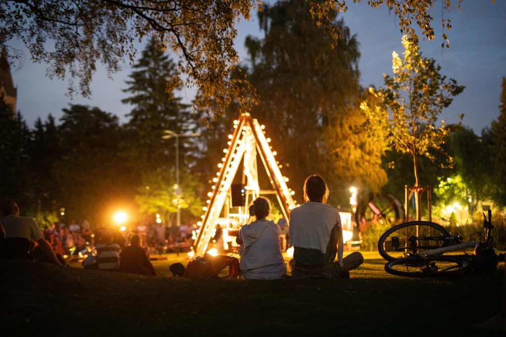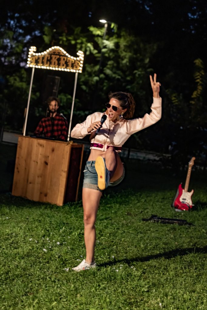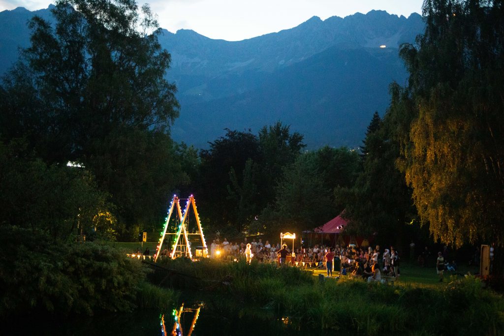OUTDOOR / Open Air Show on a specially constructed stage scenography– featuring a 360 overroll vintage swing boat ride, Ticketcounter & Popcorn push cart