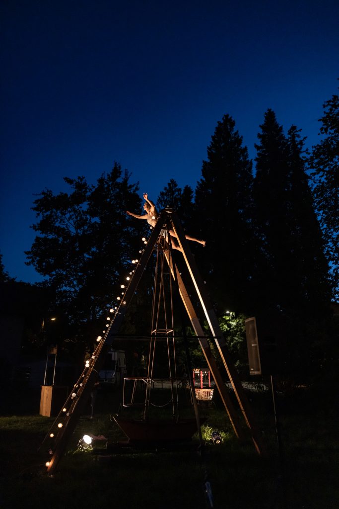 Performance: Carmen Raffaela Küster | Aerial acrobatics & Physical Theatre-PerformanceLive-Music & Soundtrack: Alessio Isgró | E-Guitar, Performance & Composition