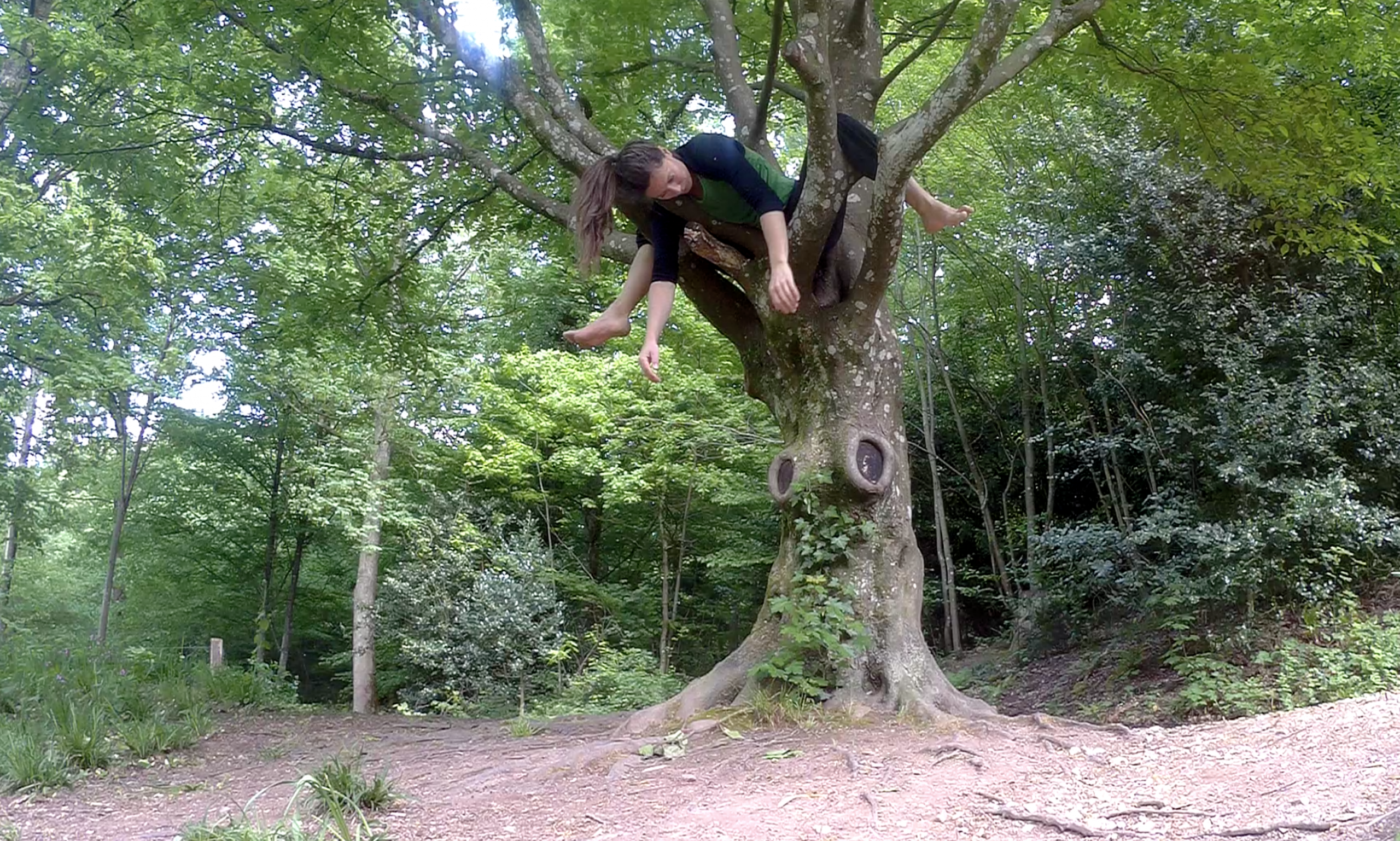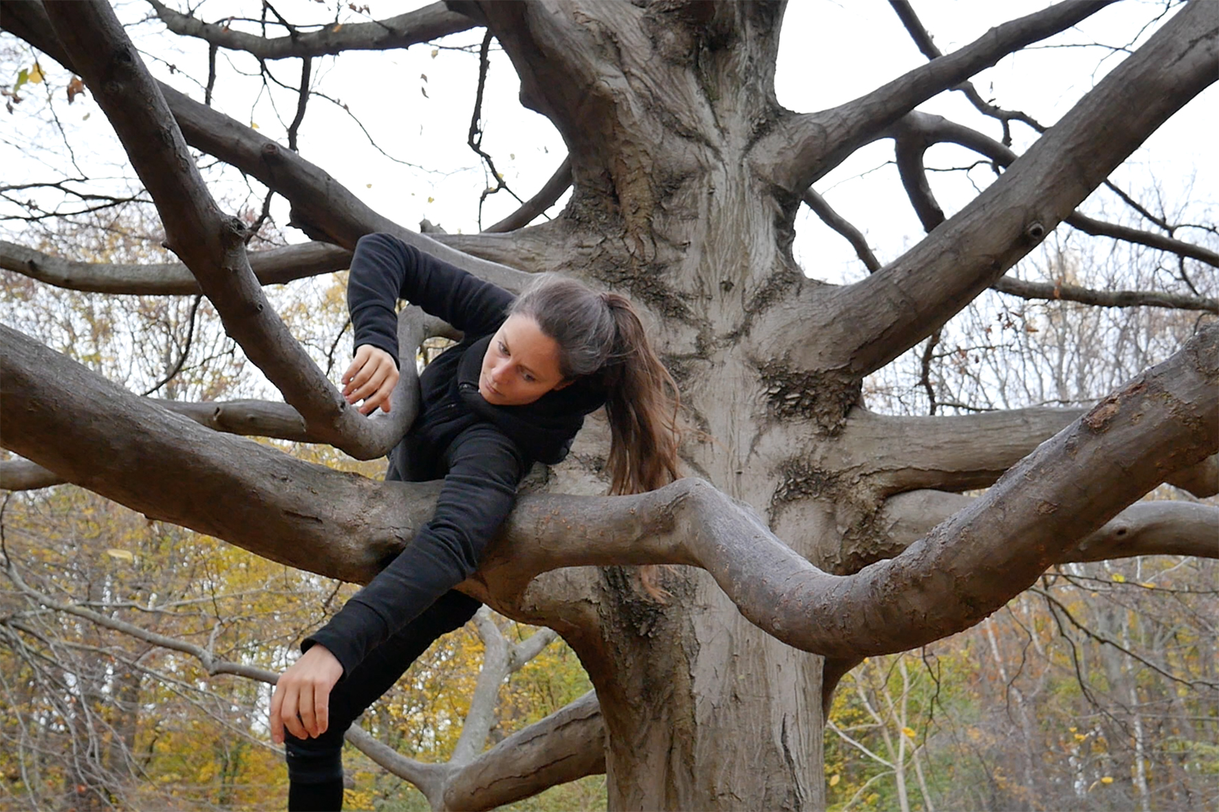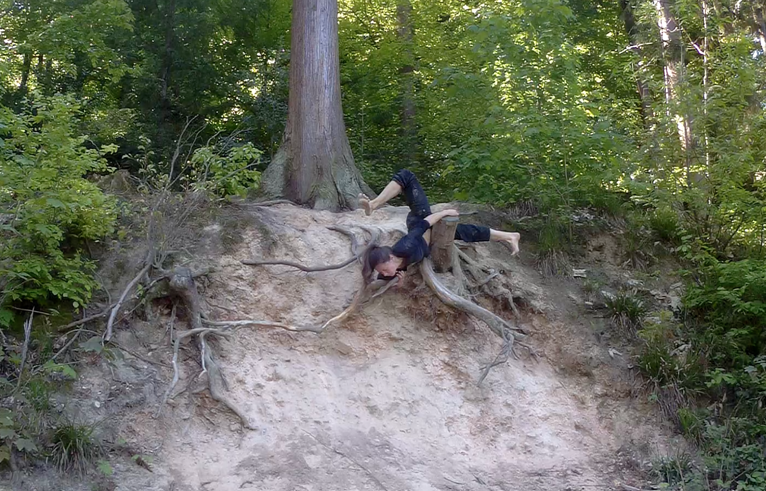 In order to challenge myself to deal with a greater variety of forms and characteristics I went outside in nature, which I love a lot as sourrounding to move in and made a series of Tree Encounters in a parc. The one-on-one meetings with still alive tree organisms happened spontaneously, so as I did not study a tree but just met it one time only, entering directly in a physical meeting of bodies. That way I made experiences that challenged my openess and that overwhelmed my trapeze mind, because many trapeze specific patterns could not directly be transferred to this always new environments. Each day I would meet another tree individual in an immediate physical encounter, without thinking and analysing the ‘architectural’ shape before, without any plan despite the one to move with it, on it and around it.
