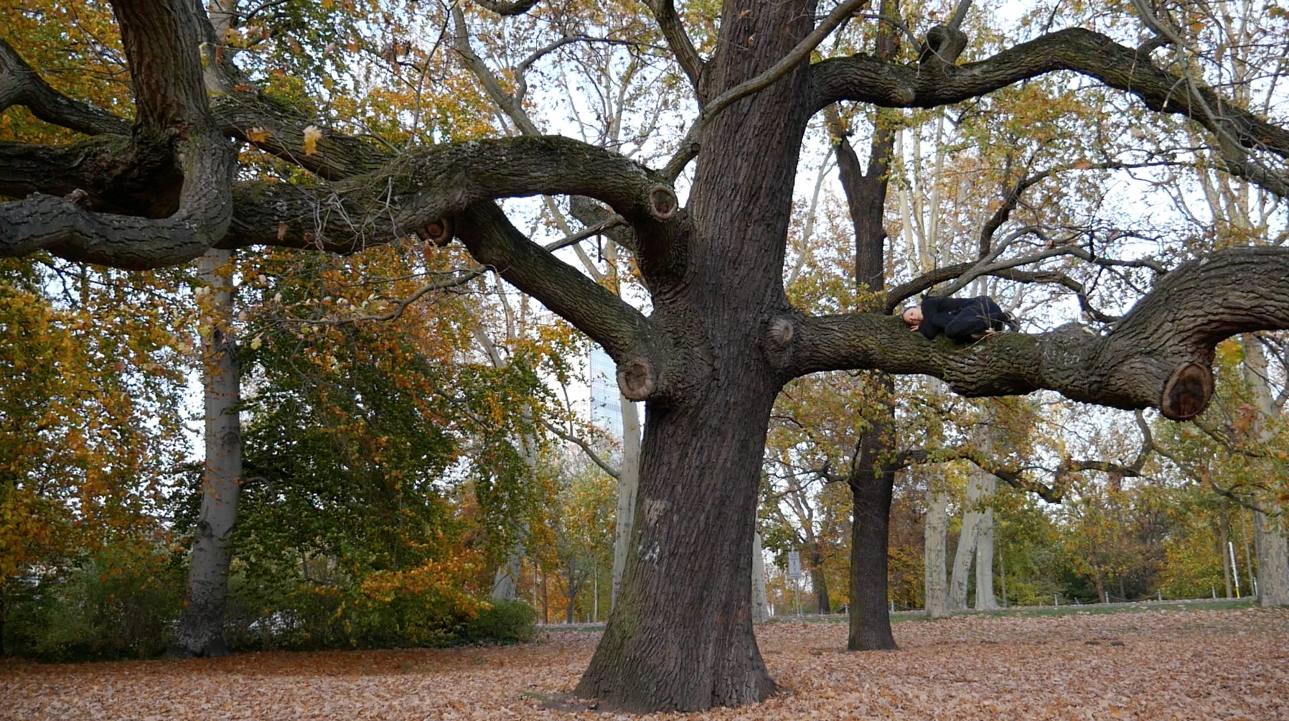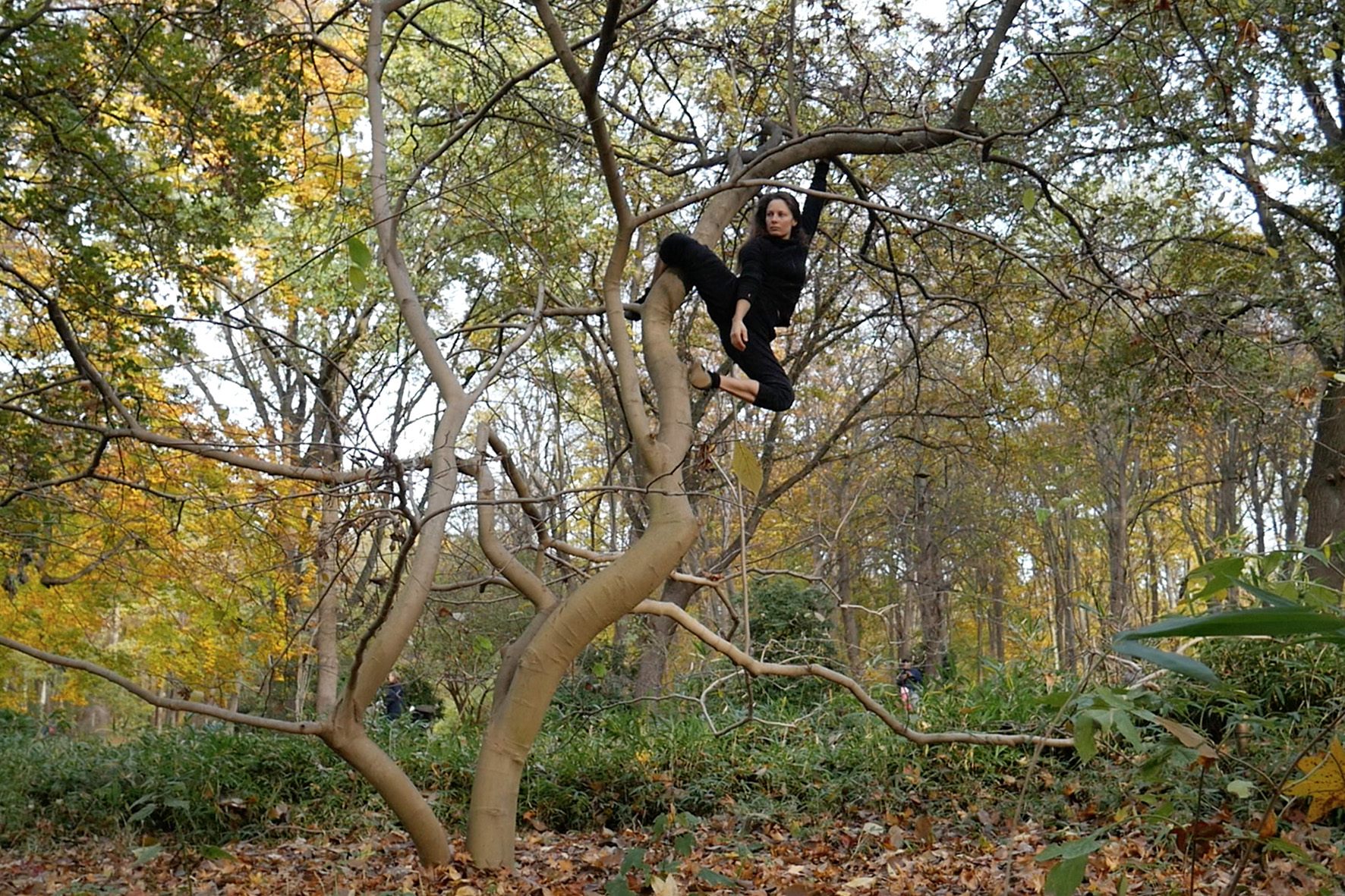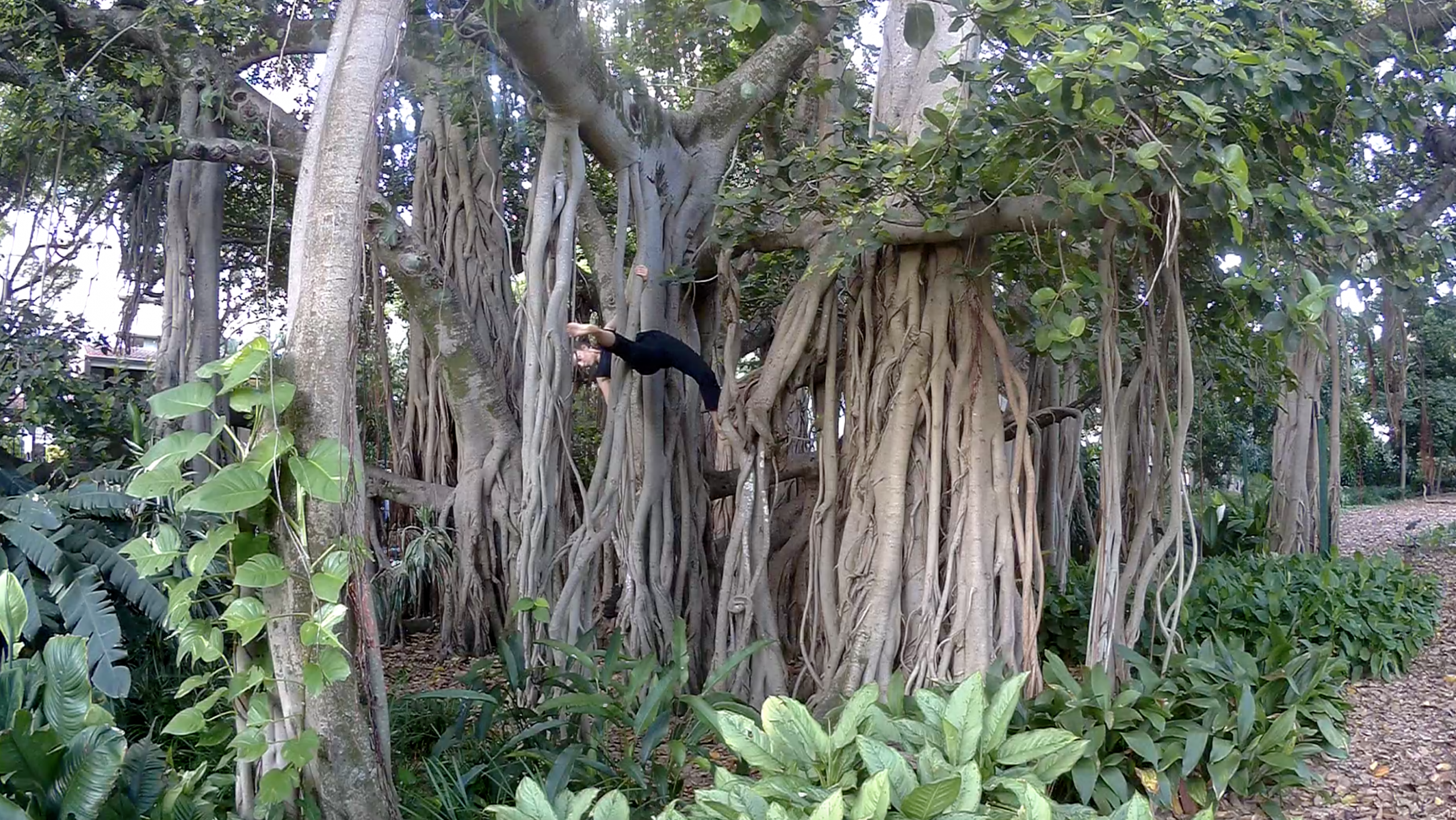 In order to challenge myself to deal with a greater variety of forms and characteristics I went outside in nature, which I love a lot as sourrounding to move in and made a series of Tree Encounters in a parc. The one-on-one meetings with still alive tree organisms happened spontaneously, so as I did not study a tree but just met it one time only, entering directly in a physical meeting of bodies. That way I made experiences that challenged my openess and that overwhelmed my trapeze mind, because many trapeze specific patterns could not directly be transferred to this always new environments. Each day I would meet another tree individual in an immediate physical encounter, without thinking and analysing the ‘architectural’ shape before, without any plan despite the one to move with it, on it and around it.
